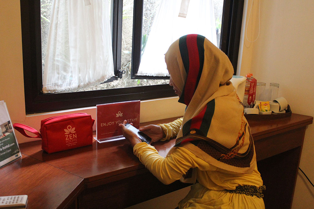 dengan notebook ZEN Rooms sementara Bunyang beberes pakaian yang dibawa.